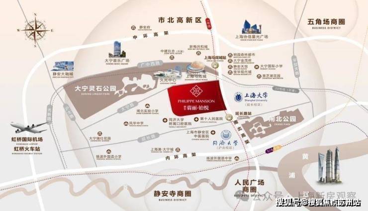 辐射商圈:人民广场商圈、静安寺商圈、徐家汇商圈、五角场商圈