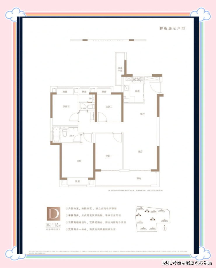 118㎡四房两卫:双阳台设计,空间利用率高,满足多代同堂需求
