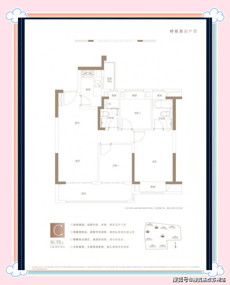 98㎡三房两卫:功能分区明确,主卧套房设计,改善型首选
