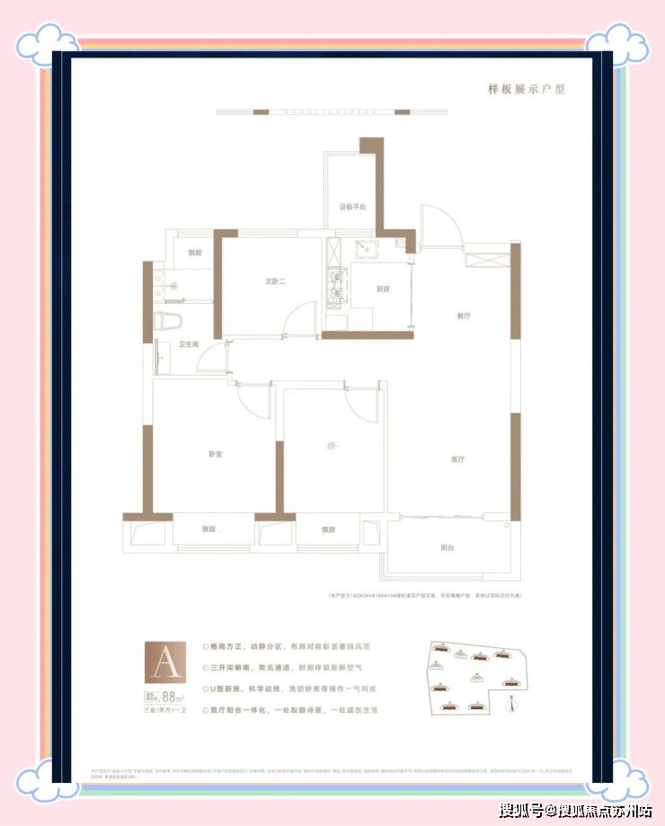 88㎡三房一卫:三开间朝南,客厅面宽3.4米,适合刚需家庭