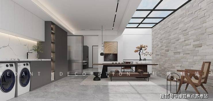 独栋的负一楼:设有一个保姆房,其余为娱乐区域,其中有台球室、影音室、吧台和健身房等;