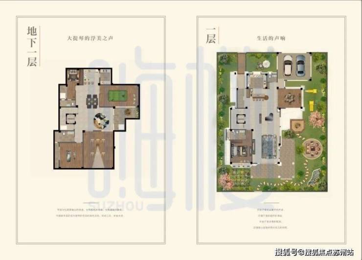 一楼:均采用了南北双入户的方式,带来了南北通透的连体超大花园,停车位设在北向,并且拥有独立的观景餐厅设计,还额外设计了超大入户平台,为住户提供了更多的便利;