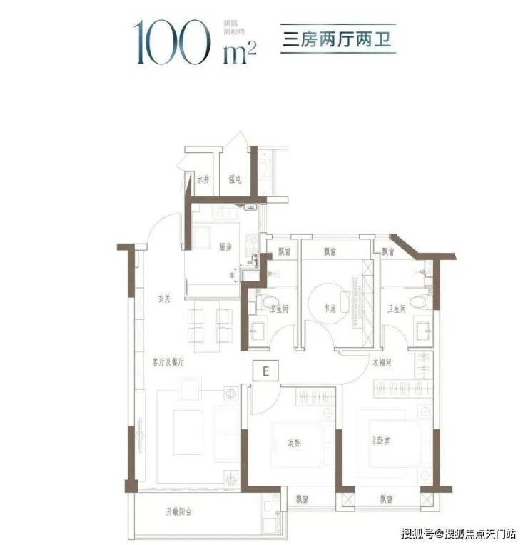 户型特点:3开间朝南,全屋阳光充足;L型厨房转角移门设计,最大化空间视野;四飘窗设计,通透空间享受;动静分区,亲密有度;套房式主卧,容纳私谧生活点滴;