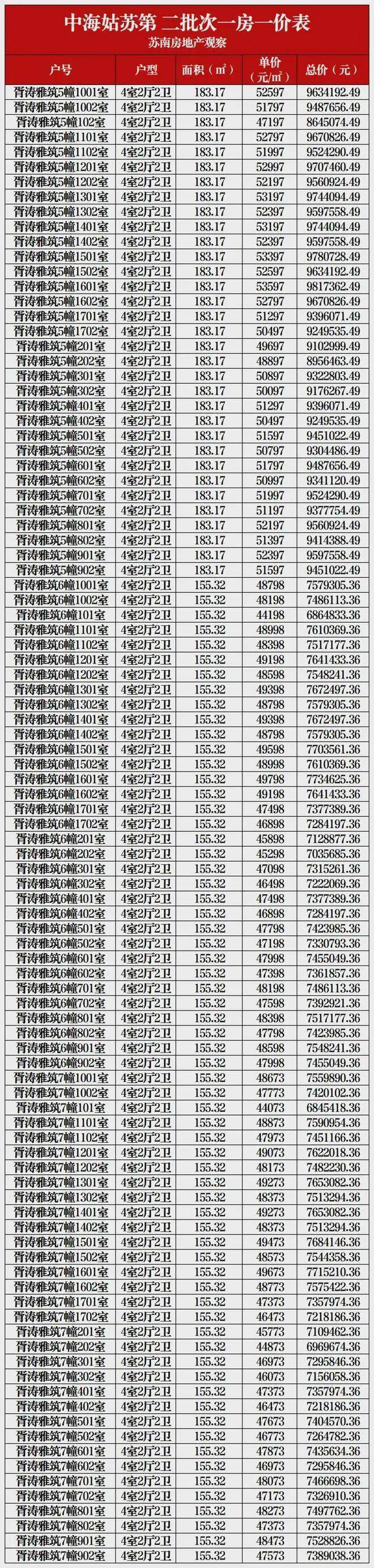 一房一价表: