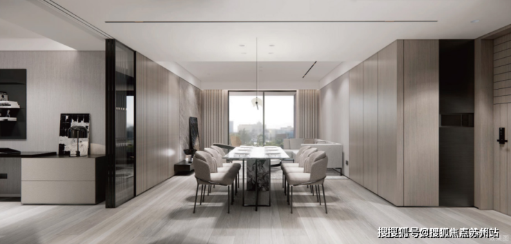 天安1号住宅为现代简约风格,运用了铝板、大面积玻璃,建筑立面挺拔熠熠生辉、历久弥新。铝合金门窗为德国进口旭格品牌,采用转角无框设计。