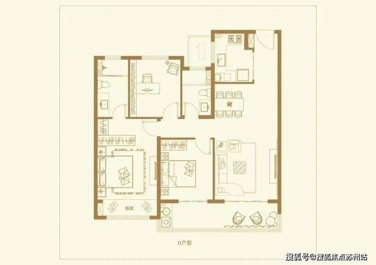 *B户型 方正三房/南北通透