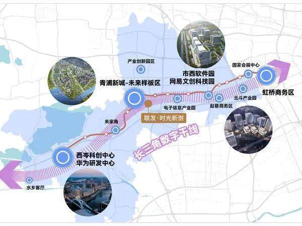 以上海青浦为起点的"长三角数字干线",沿G50高速构建万亿级数字产业生态,涵盖西岑科创中心、市西软件信息园、虹桥北斗产业园、张江科学城等。