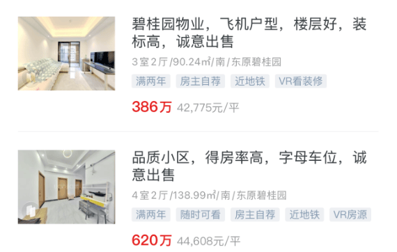 从链家最新挂牌价来看,东原碧桂园、中南君悦府等周边二手房,挂牌价也均超4万/㎡。而联发时光新澍网传单价不足4万,以“3字头”定价亮相,和周边二手房的价格差距清晰可见,价格倒挂优势毋庸置疑。