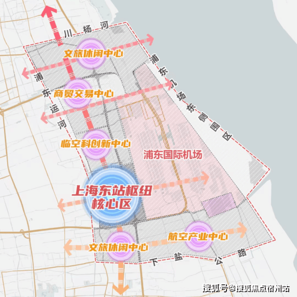 东方枢纽的建设也已经把川沙东部新城区纳入了开发范围.根据十四五规划,东方枢纽由浦东国际机场和铁路上海东站组成,为川杨河、浦东国际机场东侧围区、下盐公路、浦东运河围合的区域,总投资1500亿元,规划面积达155平方公里,我们项目正在其范围中.