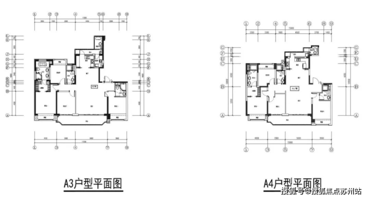 A4:与A3户型相似,南向四开间约15.9m,双套房均配有独卫,双联阳台约8.3m,主卧额外配有衣帽间。