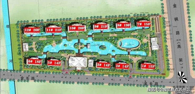 苏州星河湾全盘打造11幢14-21F住宅,围合式布局,仅有2排。
