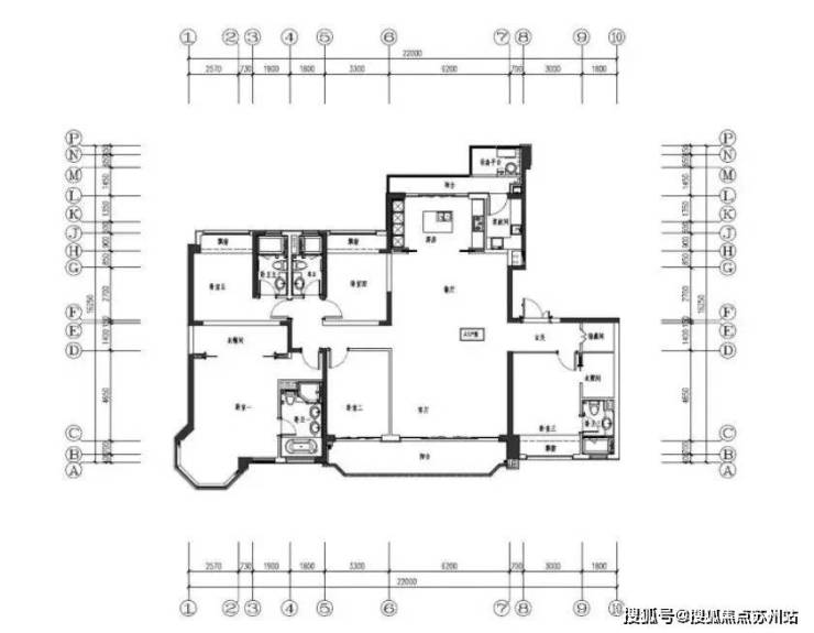四开间朝南约22m,客厅是宽厅设计,开间约6.2米。南北双阳台,南向双联阳台开间约9.5米。南向三个卧室中,其中两个卧室为套房设计,带独卫和衣帽间。北卧室均有独卫。