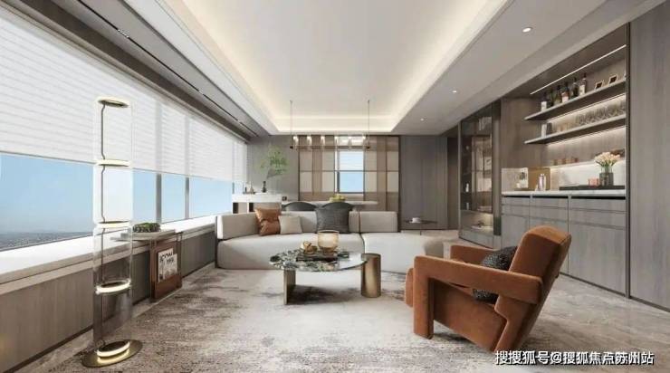 在建筑上“卷”审美力与尊崇感,打造滨江少见的四面铝板公建化立面,采用浅色铝板、香槟金铝板及米白石材,带来精致米白色美感,搭配屋顶“流金塔冠”,宛若镶嵌滨江的耀眼珍珠,充满昭示性与辨识度,轻盈、雅奢且秩序感十足。