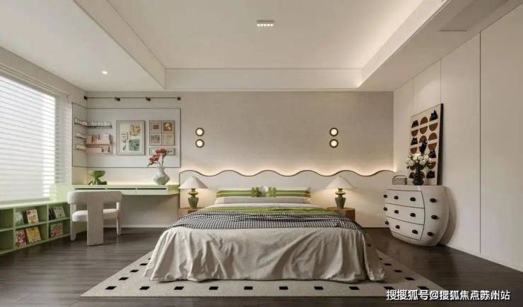 首先是餐客厅约6.6米长飘窗真正意义上的「临窗区」之王,你可以通过打造靠背、木窗套、脚踏、灯带、插座和电动百叶,将长飘窗真正利用起来,全家人可以躺着坐,满足观景、休憩等生活志趣;其次是超大次主卧的空间设计,封闭式阳台可以改造成室内空间。
