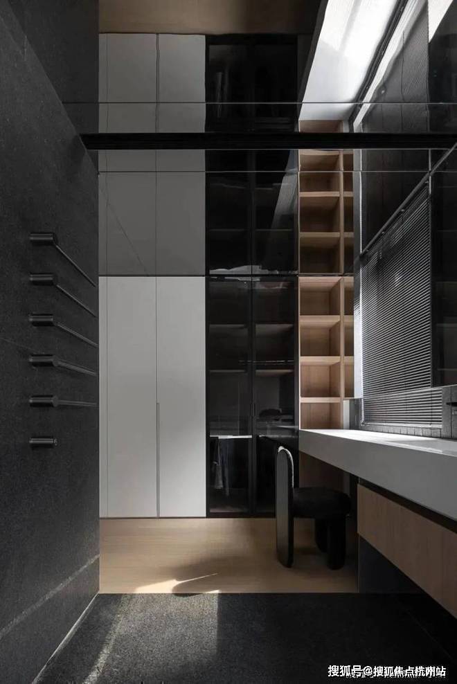 玄关部分:进门玄关部分和餐厨区域作一体,进门走道交通空间既是餐厨的延展,也是玄关的操作,效率还可以,玄关收纳柜也很多,实用.