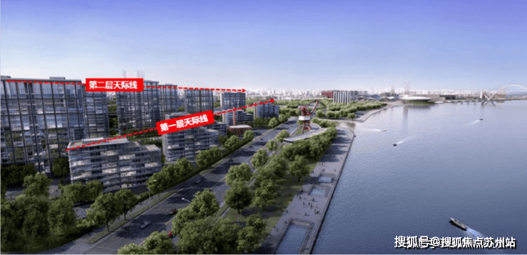 西侧沿江布置6栋8层住宅(其中靠世博大道5栋为保留建筑),东侧沿雪野路布置19~22层住宅,形成西低东高两道天际线,最大程度利用江景资源。由于马路对面就是黄浦江,没有任何遮挡,所以整个社区未来基本可以纵享一线滨江景。