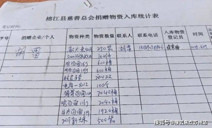 胡雷亲述,本次紧急援助的物资包含大米1万斤、方便面500箱、矿泉水500件、手电筒100个,以及手套2000多双,这些物资的总价值估计约为5.5万元。