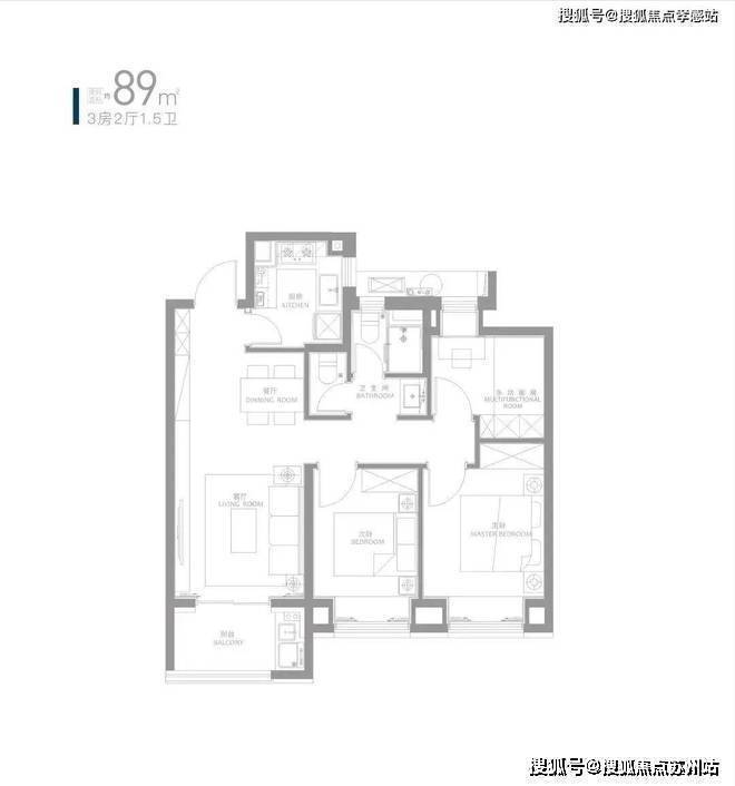 约89㎡三房,1.5卫设计为临港首创,在总价可控的基础上兼具实用性。