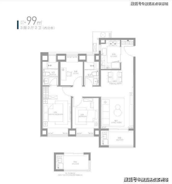 约99㎡三房,全卧室+卫生间均带飘窗,清风光影景色宜人。