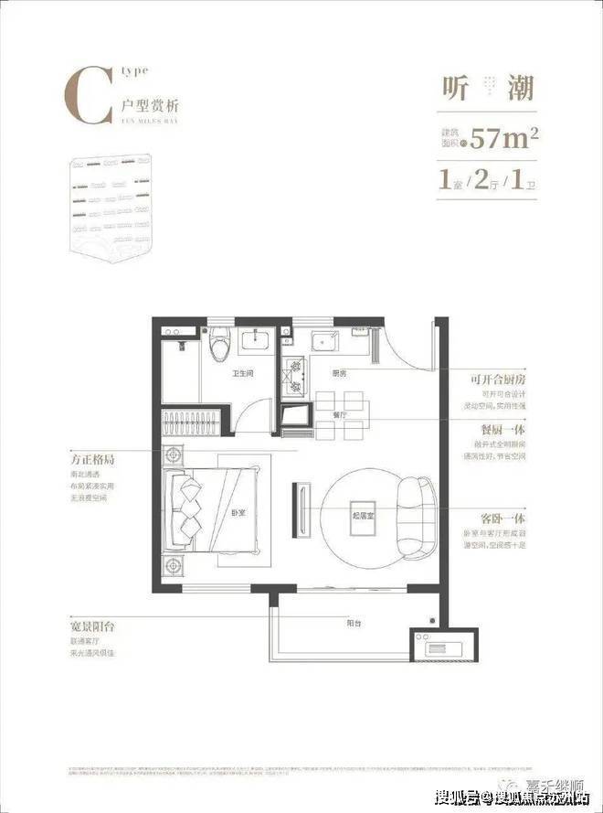 【高层55平】约6.25m宽景南向观海,酒店式套房设计,户型方正,南北通透!