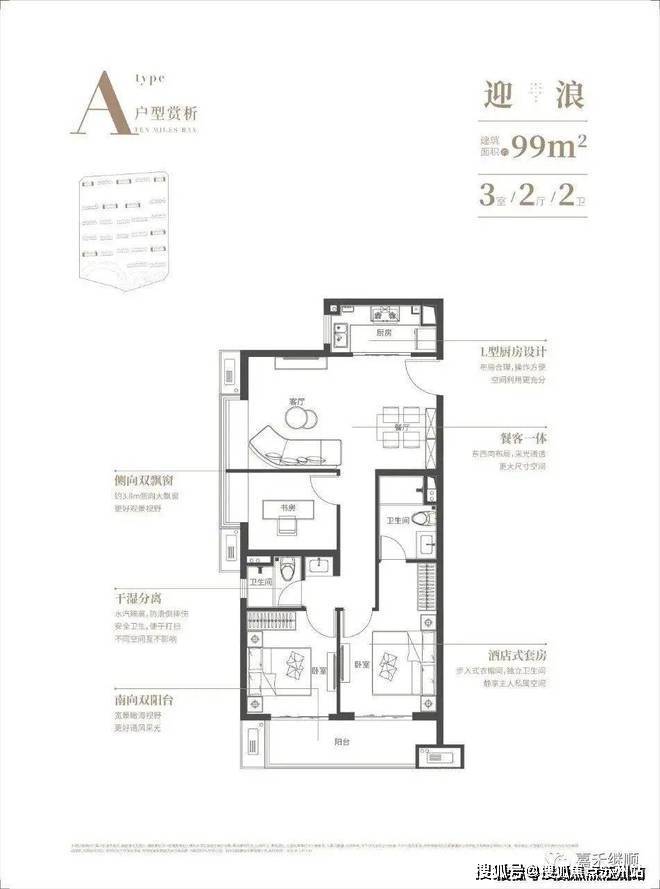 【高层99平】约6.1m大宽面双阳台,近6m客厅观海飘窗,奢享270º三面海景,主卧套房设计,N+1灵动空间!
