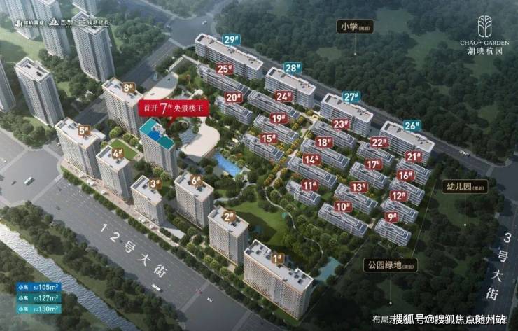 为最大化实现公园的栖居理想,潮映杭园依园排布揽景小高层、墅境洋房、都市排屋三重奢品。建筑面积约105-130㎡揽景小高层首发面市,以极致化的揽景采光面、超90%+高得房率,重新定义金沙湖改善尺度。