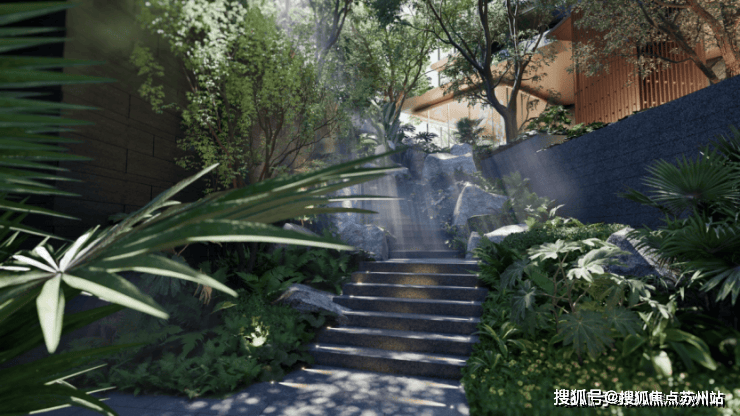 当你在社区步道间自由穿行、上下漫步时,如同行走在自然的峡谷溪涧之中。