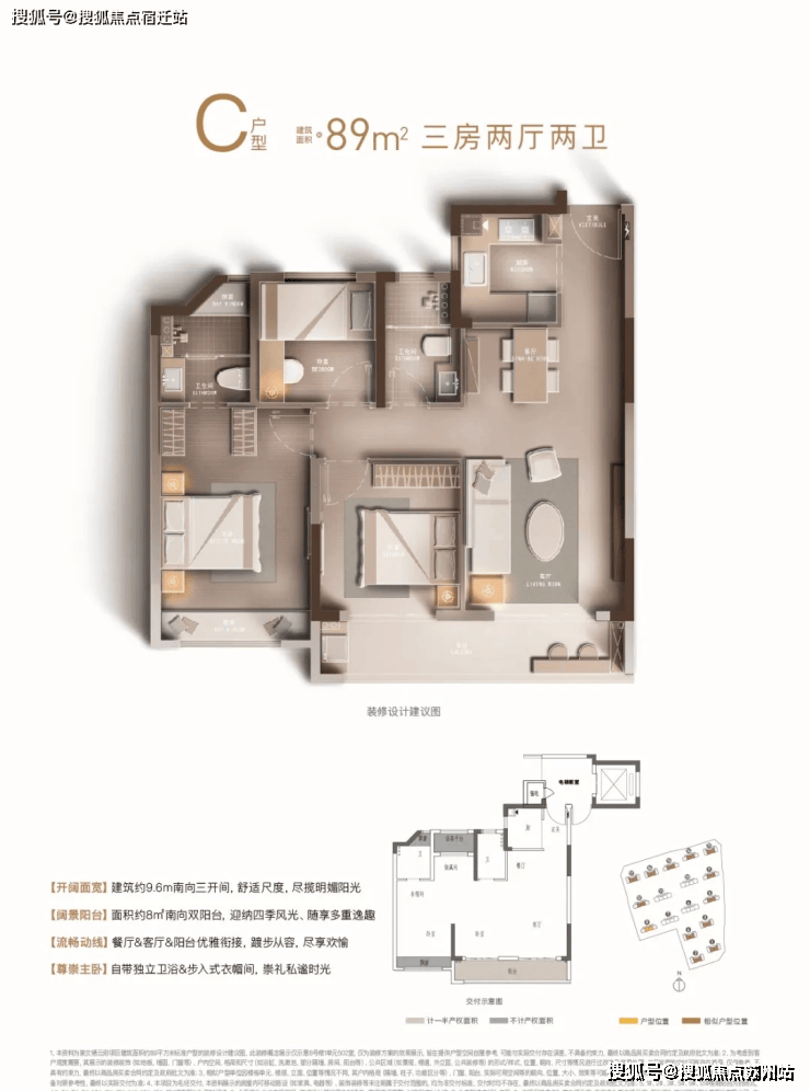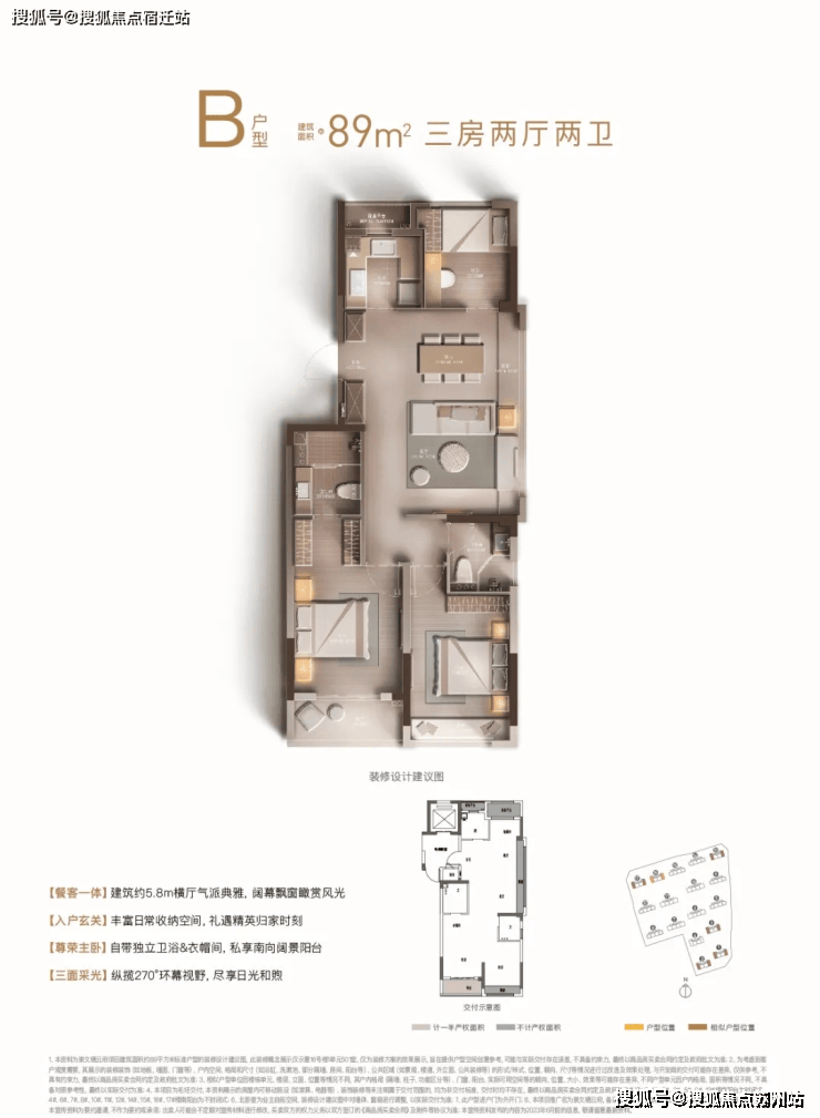 ⑤匠心户型合理规划布局,建面约89㎡刚需挚爱、建面约110㎡轻松进阶