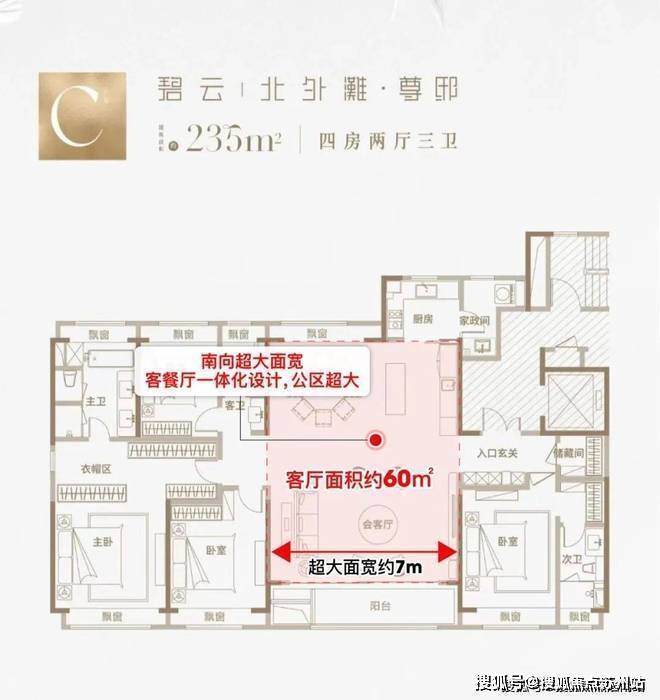 ③南向超大面宽,客餐厅一体化设计!