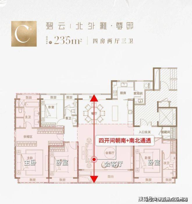 建面约235㎡户型更是做到南北通透+四开间朝南+南向大宽厅的格局,让业主起居之间沐浴充足阳光。