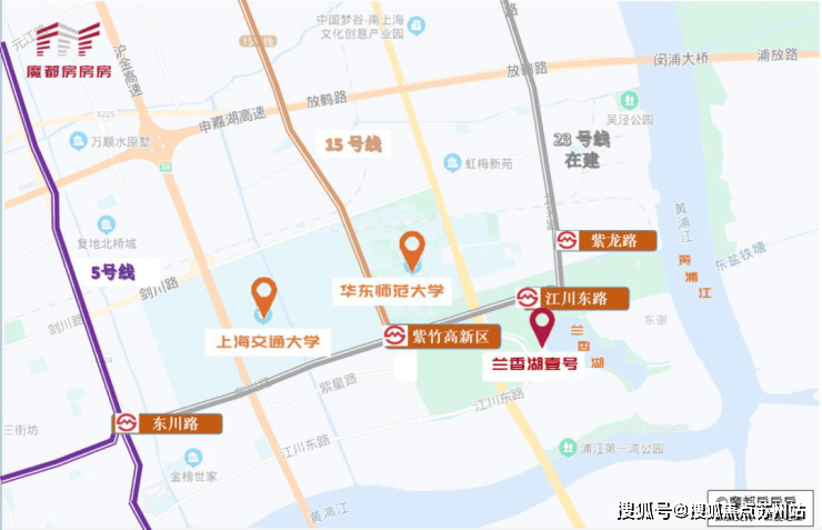 交通:距 15 号线紫竹高新区站约 1.7 公里,在建 23 号线江川东路站约 1 公里,虹梅南路隧道 30 分钟直达徐家汇,自驾经浦星公路、虹梅南路高架可快速连接中外环。
