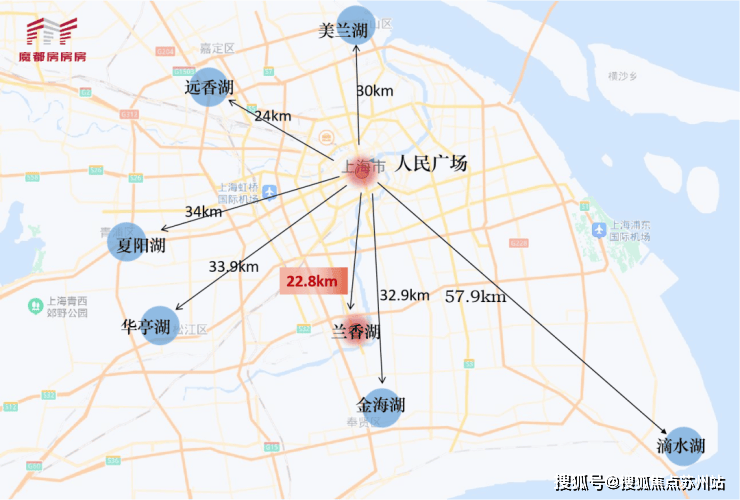 更重要的是,它的地段也无可比拟,从地图上能够看出,兰香湖是距上海市中心(人民广场)最近的湖系资源,凭借上海少见的一线湖景特质,也为兰香湖2号赋予了稀缺的价值内涵。