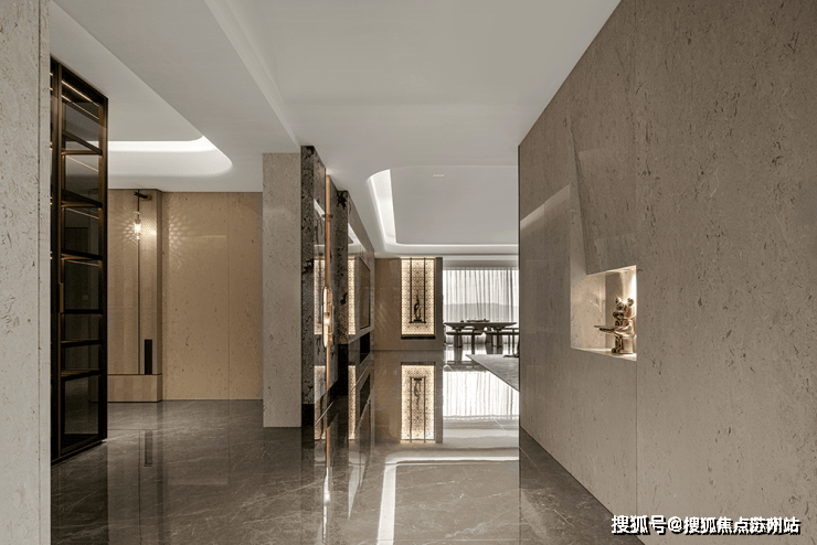 私密场域依旧保持静谧,黑白色基础上搭配了更多的色彩,例如深棕、浅紫等,艺术品的衬托深邃迷人,热络了家的氛围。