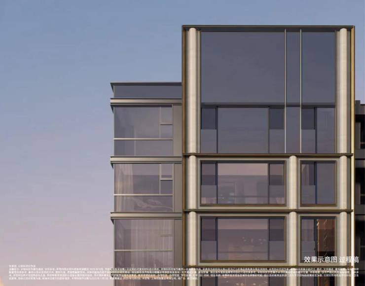 壹江臻邸亦摒弃昙花一现的潮流设计,以新经典风格打造跨越时间的作品。建筑立面溯源希腊柱式的古典秩序,注入现代设计语言,纵向柱式线条勾勒挺拔韵律,横向铝板舒展延伸,石材+铝板+超大玻璃的经典组合搭配竹节弧形仿石铝板,兼顾静谧与通透,形成极具辨识度的城市美学地标;