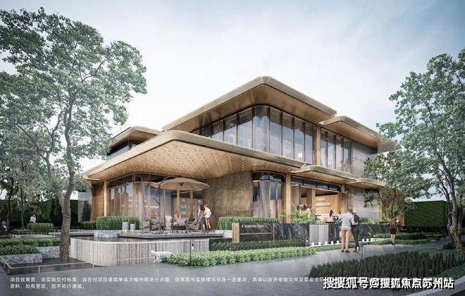 还能在归家的动线上体会到不同的景观节点:境隐门开(主入口空间)、悬廊叠瀑(水岸会客厅)、绿野拾趣(儿童乐园)、轻舞晓影(乐享氧吧)、樾下茶庭(宅前花园)、花香漫语(宅前会客花园)、轻氧花园(全龄活动区)。
