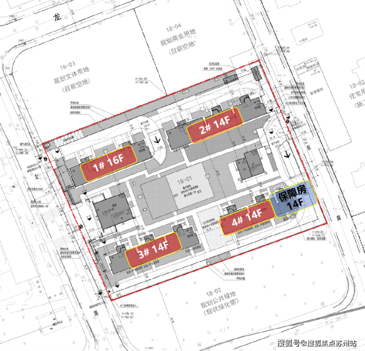 根据项目规划设计方案,18-01地块拟建4幢14-16F住宅,1撞14F保障房,以及配套用房等建筑