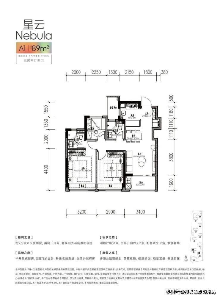 带独立玄关收纳,南边套房主卧带走入式衣帽间+独立卫浴+飘窗,南向约6.4米面宽,带阳台,U型厨房带大开窗,餐客厅一体带约5.8米超长飘窗……该户型更具有生命力。