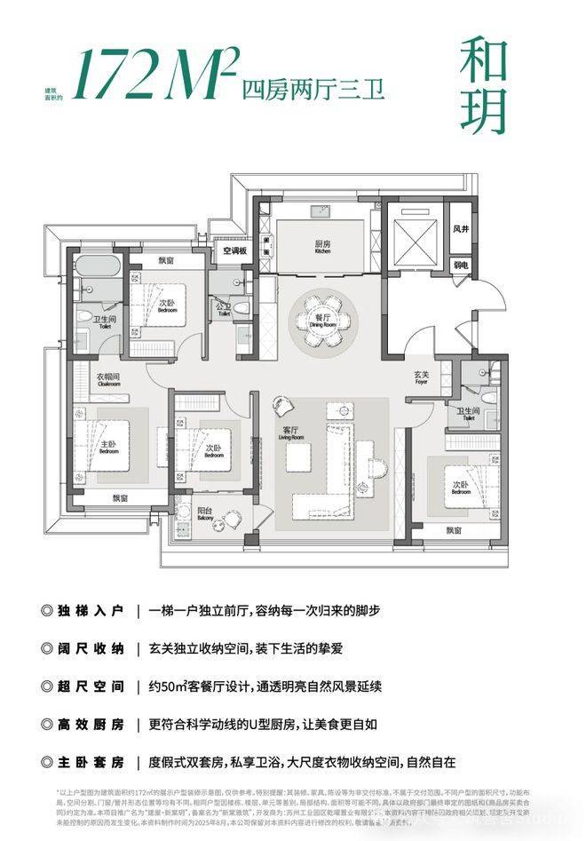 项目容积率1.7,规划11栋13-17F的小高层,约40-65米超宽楼间距布局,保障日照充沛与视野无遮挡.建筑面积约165-225㎡的园意平邸,以超越常规的空间格局,重新定义“奢适”新境界.在追求均好性与南向开间的极致尺度中,不仅打造理想居所,更前瞻性地规划了两代同堂的理想生活模式:家人之间既保有恰到好处的独立空间,又能实现朝夕可及的温情共处.