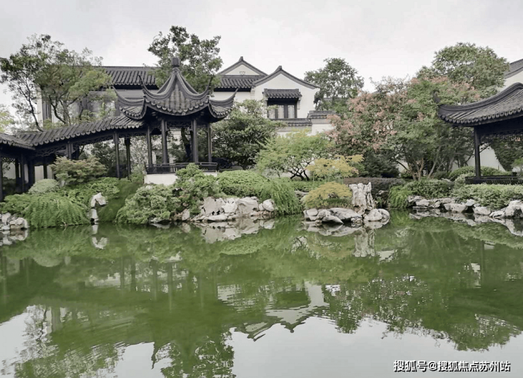 据资料介绍,其复刻的是北宋苏州平江古城规划理念,引23万㎡天然湖水入园,包括南北主轴、东西水巷、八座园林、“春夏秋冬”四季院组团等布造,此造园手法,在中国独一无二。