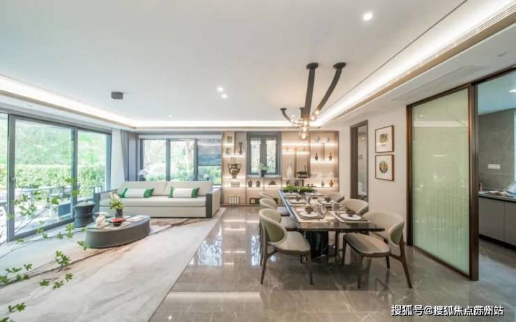 看一眼外立面,白色石材、香槟色的木纹铝板、大面积玻璃的拼接组合,怎么看都不像一个门槛只有400万+的低密叠墅。