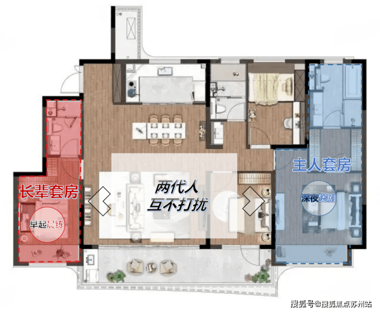 尤其是实现“空间平权”的双套房设计,充分尊重了每个人的生活习惯。