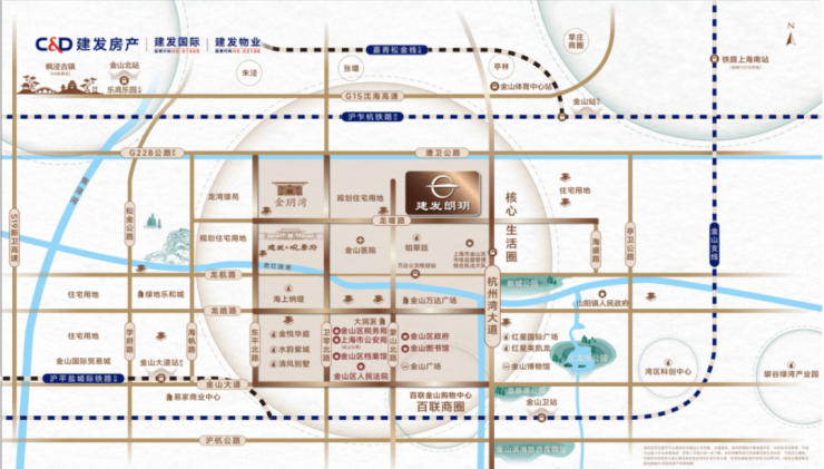 建发・朗玥位于上海金山新城,处于金山正芯的位置,周边有金山区政府等市政单位,地理位置优越。