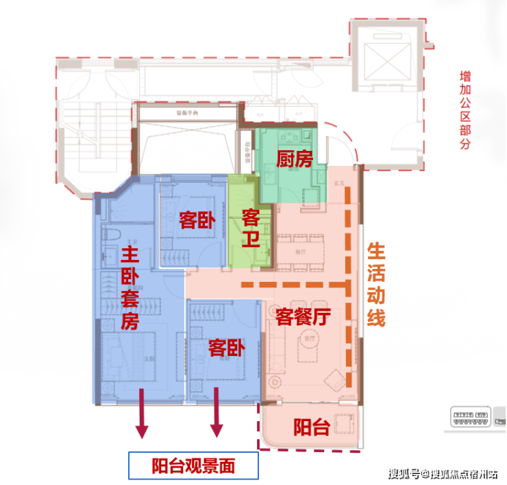 在设计上,还贴心打造了 动静分离 ,两个区域各自分开,能保障安静休息和娱乐社交互不干扰!