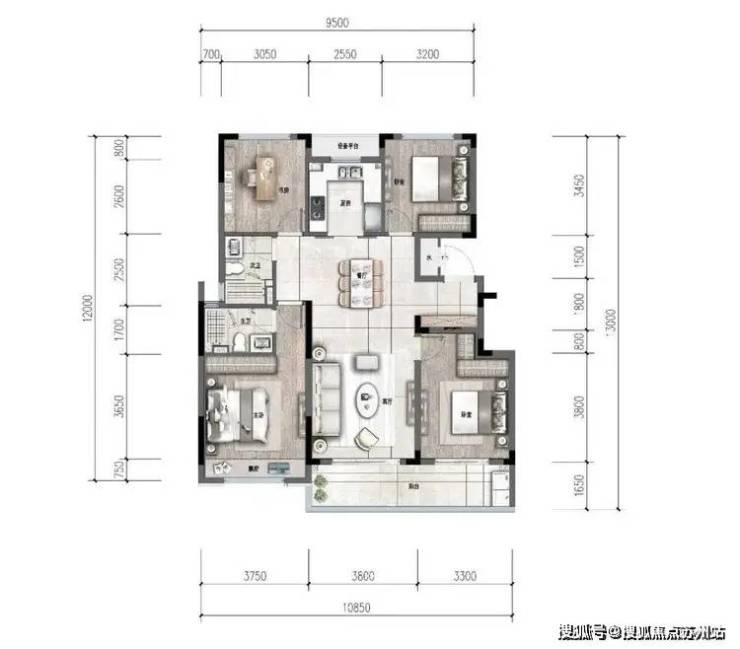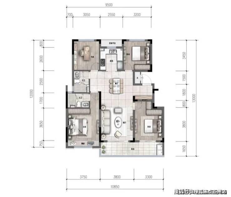 市面同面积高层,第四个房间开间通常仅2.7米,只能做个书房。但它最小的房间开间也达约3.05米,每个都能做卧室。而且四个房间相对独立,3代同堂也不会相互干扰。