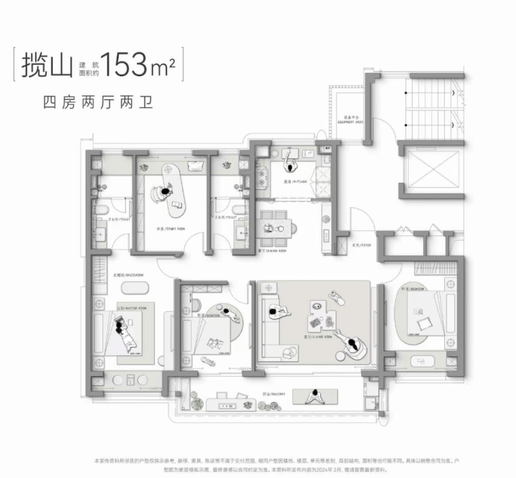 功能齐全:全尺度四房设计,即使未来家庭人口增加,也完全够用,考虑得非常长远。