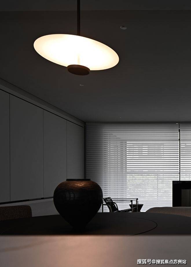 拉下落地窗前的百叶帘,光线被过滤成细密的暗影,仅用一盏孤灯,就能营造出私密又浪漫的“艺术展”。