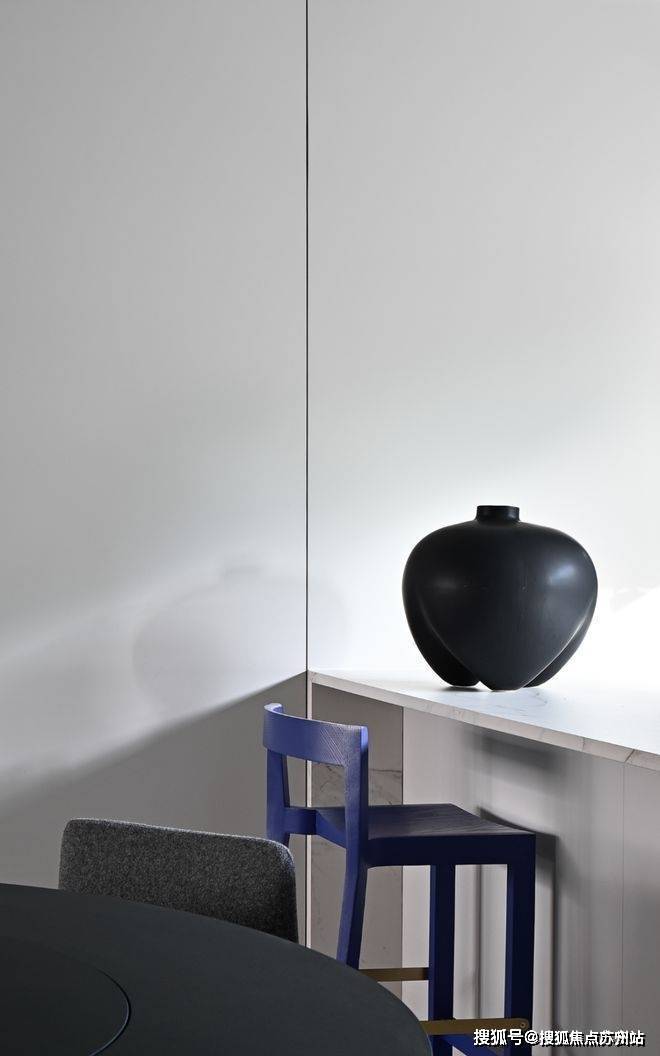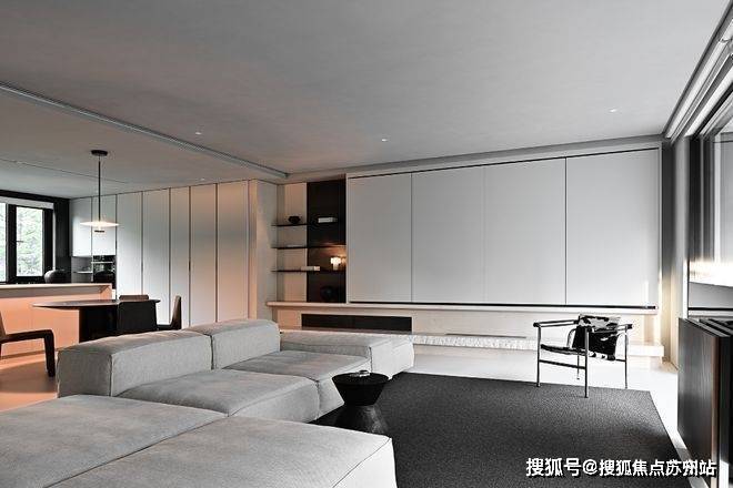 墙面棱角与家具线条直洁简练,严谨的秩序中略有灵动之意。家正在理性与感性之接反复拉伸,温暖诠释着“容器”的意义——盛放时间,包容记忆,链接未来。
