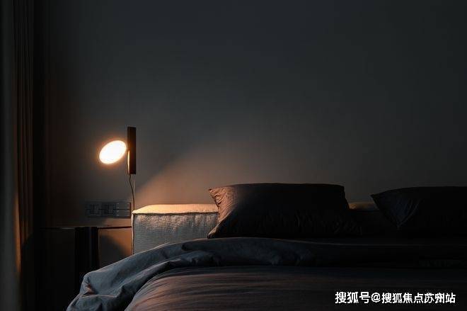 从客厅行至卧室,光线也由明转暗,携手人们渐入佳境。温暖柔和的光线呈点状晕散,柔顺迂回的线条在暗影中浮现,朦胧暧昧的氛围大面积散开,为夜色中的好时光作陪衬。