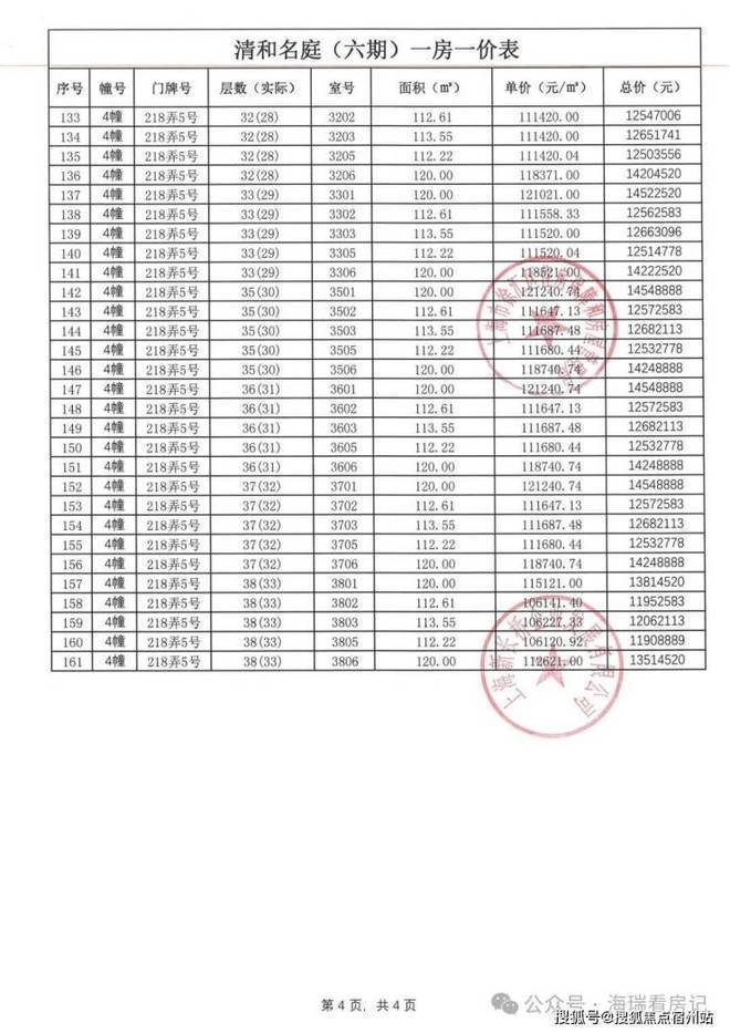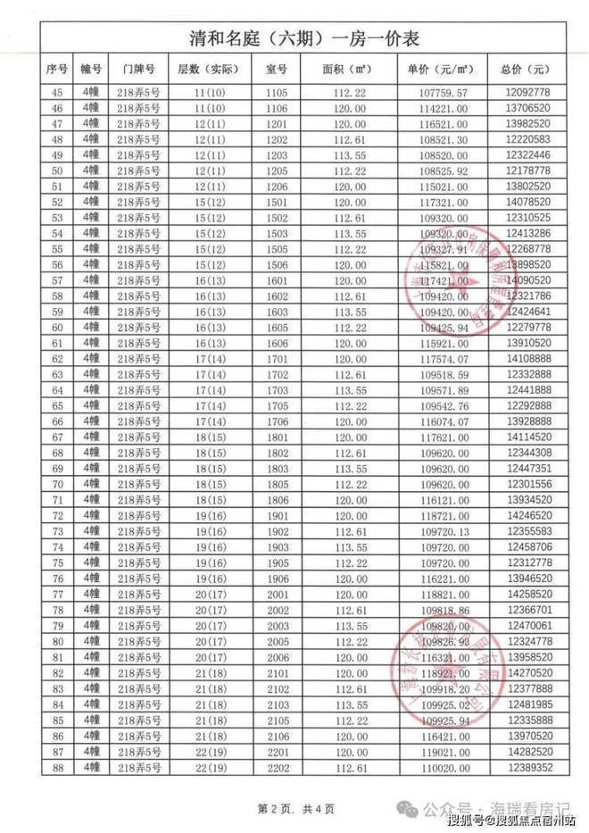 一房一价表如下: