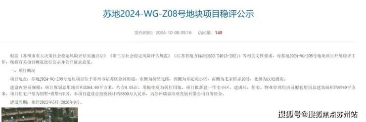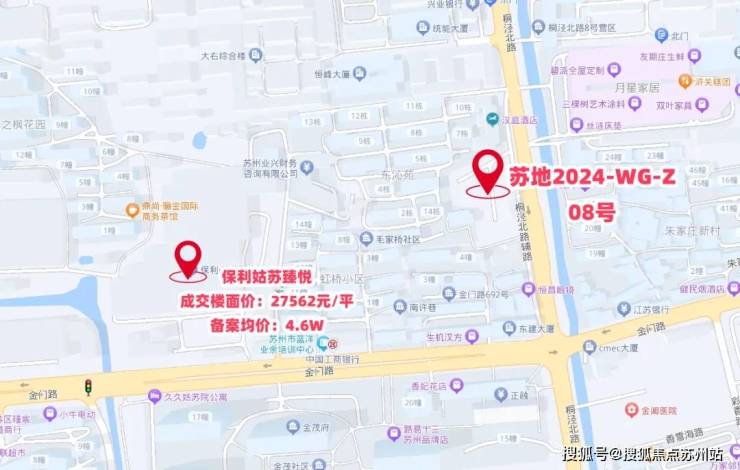 公示上来看,项目地点:苏地2024-WG-Z08号地块项目位于苏州市姑苏区金阊街道,东侧为桐泾北路,西侧为东沁苑小区,南侧为毛家桥弄10号,北侧为汉庭酒店。